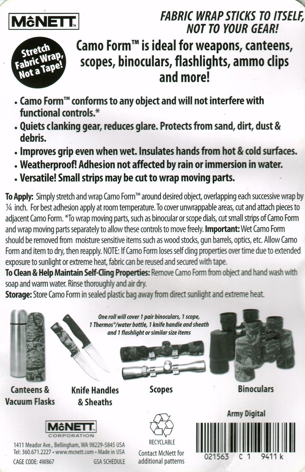 MCNETT CAMO~FORM PROTECTIVE SELF-CLING CAMOUFLAGE WRAP FOR SCOPES GUNS NIP