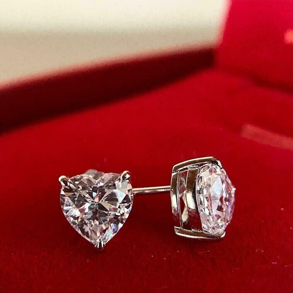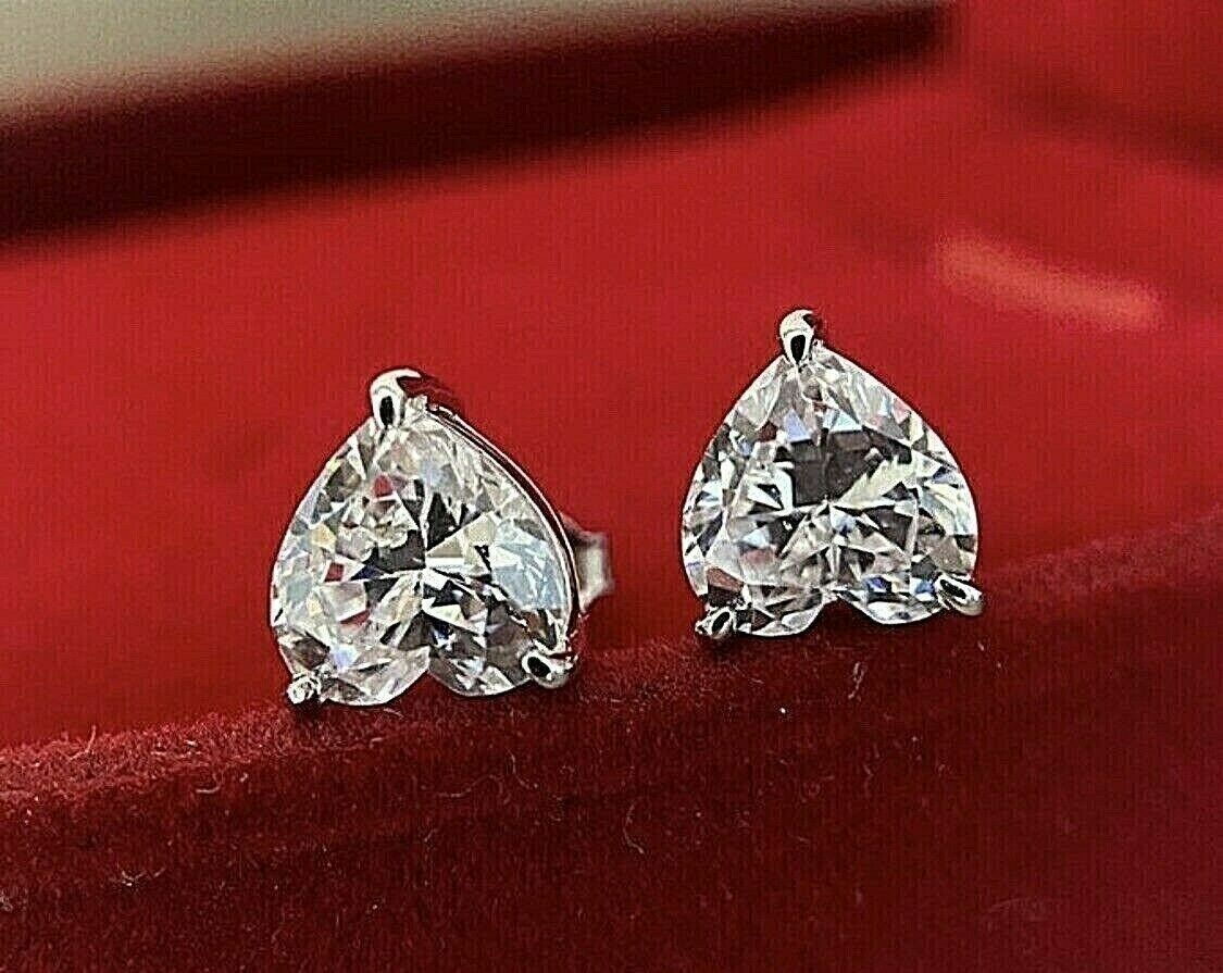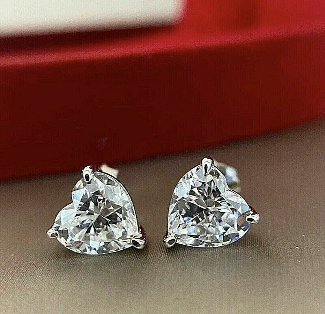 2Ct Heart Cut Moissanite Women's Stud Earrings 14k White Gold Plated
