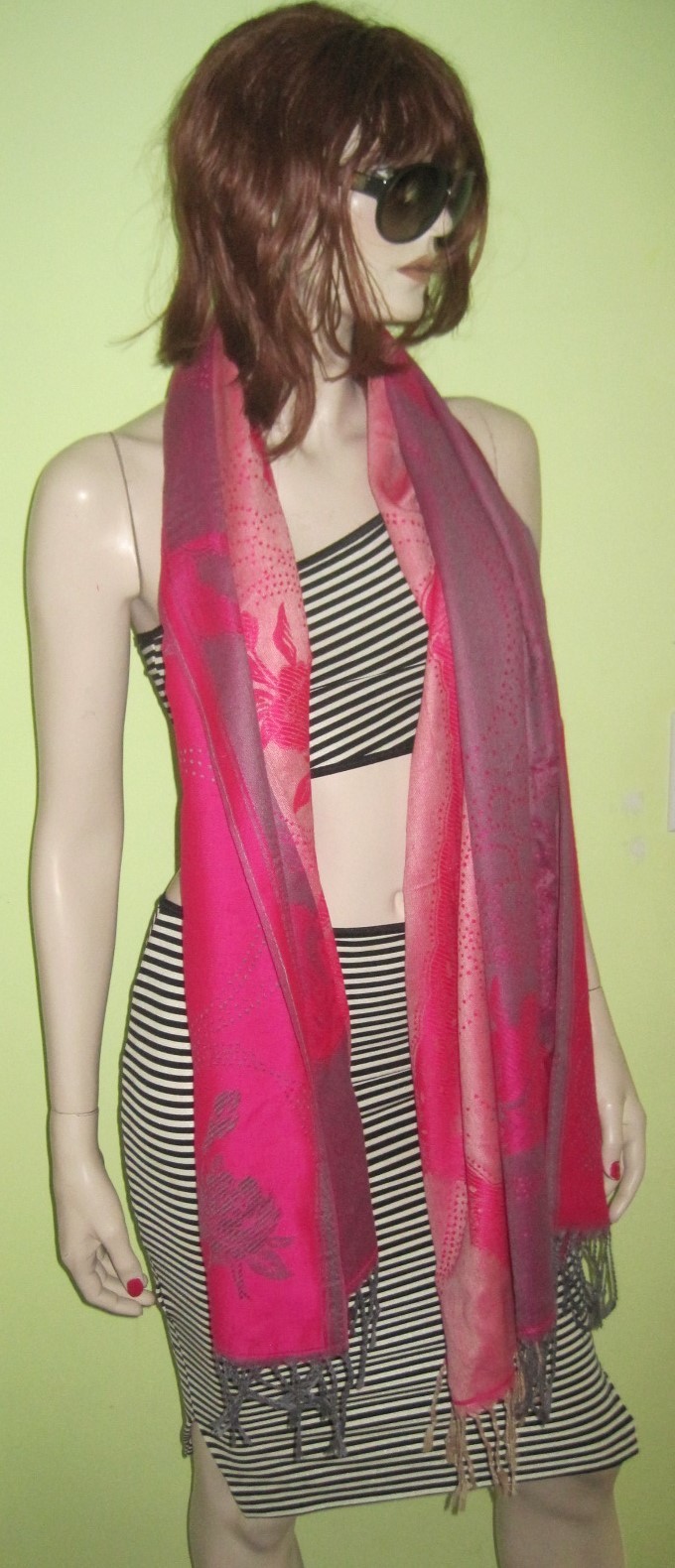 Vintage WOMEN'S Ladies PASHMINA Floral Pink Pattern Tassel Long SCARF Wrap