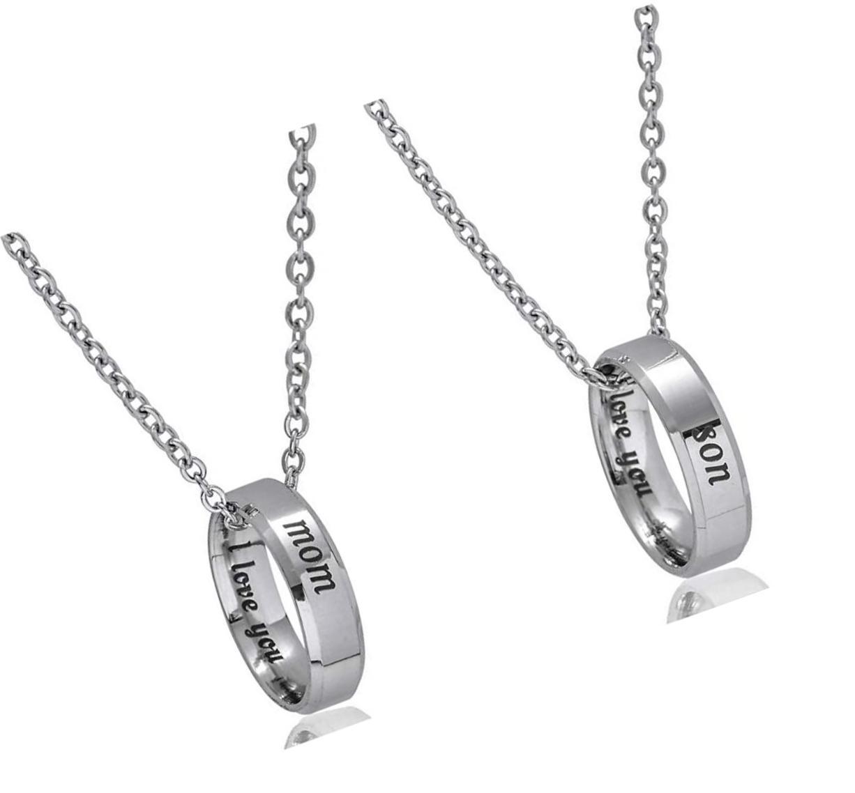 Pack of 2 Mom Son Ring Pendant Necklace Birthday I