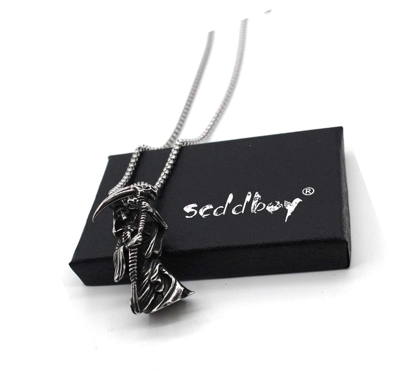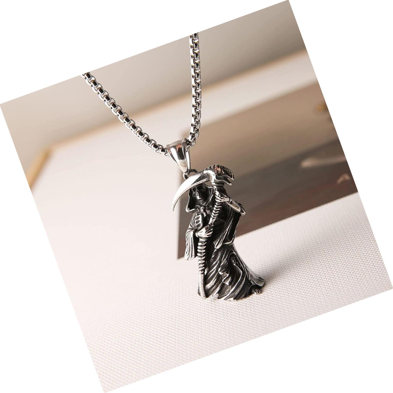Skull Pendant Necklace for Men,Gothic Grim Reaper