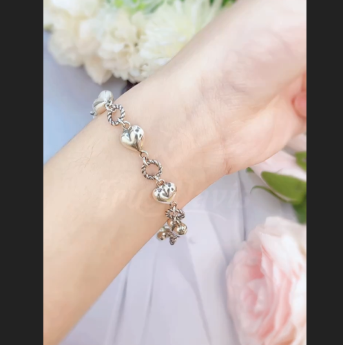 Authentic 18K 925 Sterling Thai Silver Romantic Heart Twist Ring Bracelet