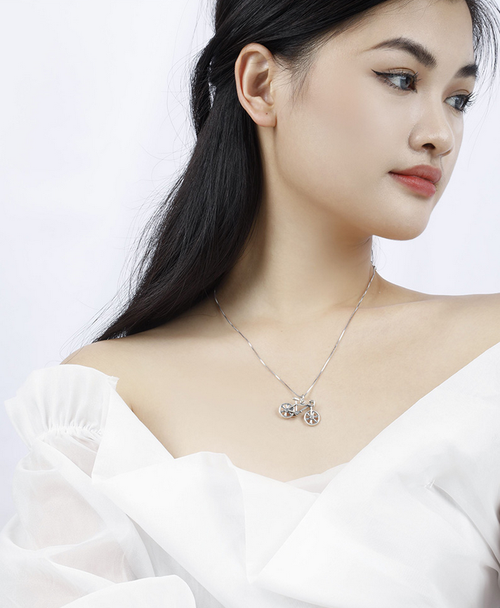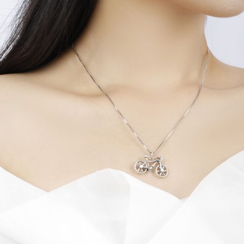 Classic 18K 925 Sterling Silver Fashion Personality Rotation Bike Necklace