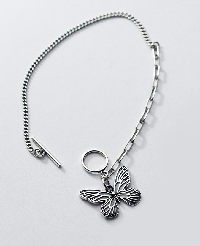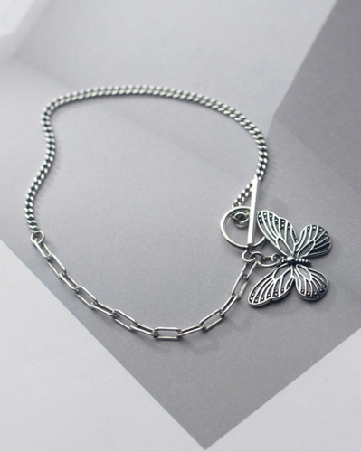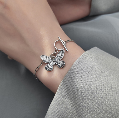 Authentic 18K 925 Sterling Thai Silver Butterfly Spawn Pendant Chain Bracelet