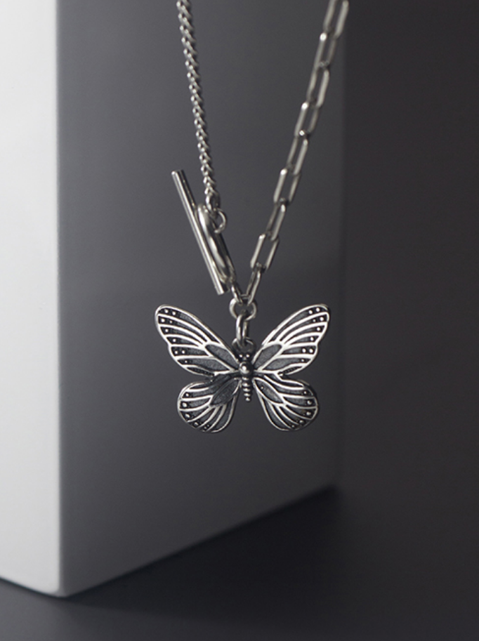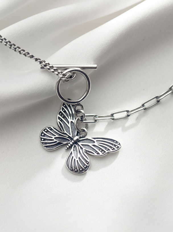 Authentic 18K 925 Sterling Thai Silver Butterfly Spawn Pendant Chain Necklace