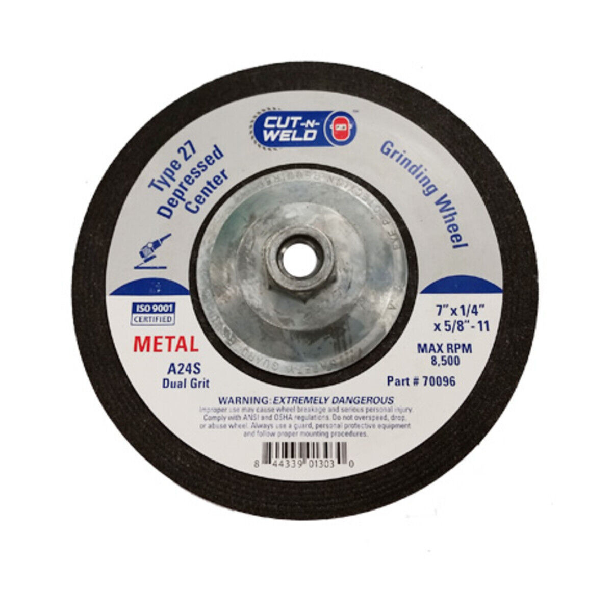 Cut N Weld Type 27 Dual Grit Center Pipe Grinding Wheel 7" x 1/4" x 5/8"