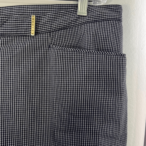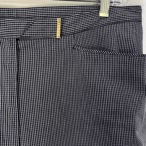 Lauren Jeans Co. Ralph Lauren blue and white micro checked lightweight, slacks, size 16, zip and button closure with a snap gold detail that says Lauren