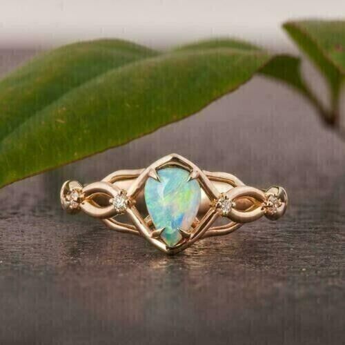 2CT Pear Cut Simulated Fire Opal Solitaire Engagement Ring 14K Rose Gold Plated
