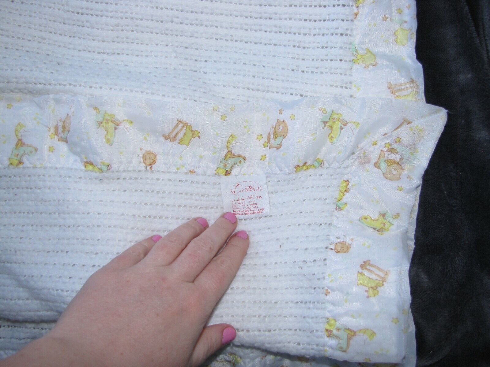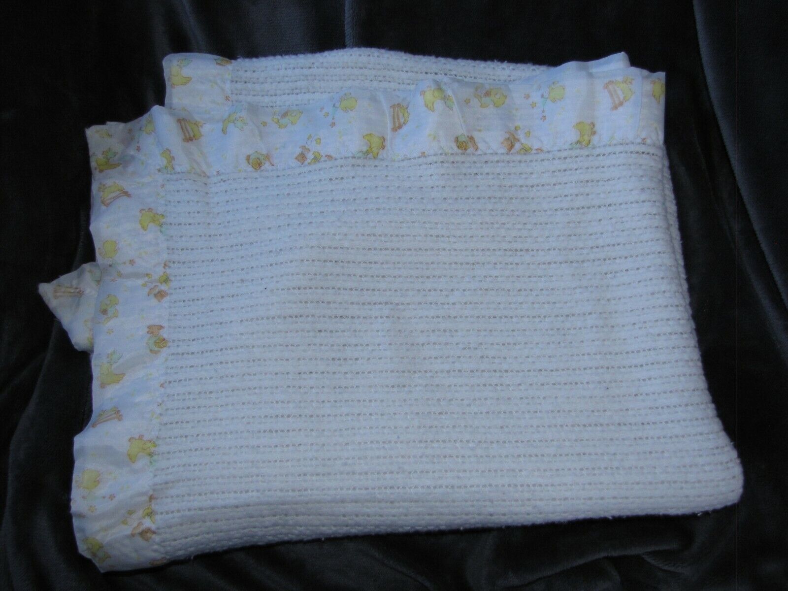 CARTERS FLEECED ACRYLIC WHITE THERMAL WAFFLE WEAVE NYLON SATIN TRIM BABY BLANKET