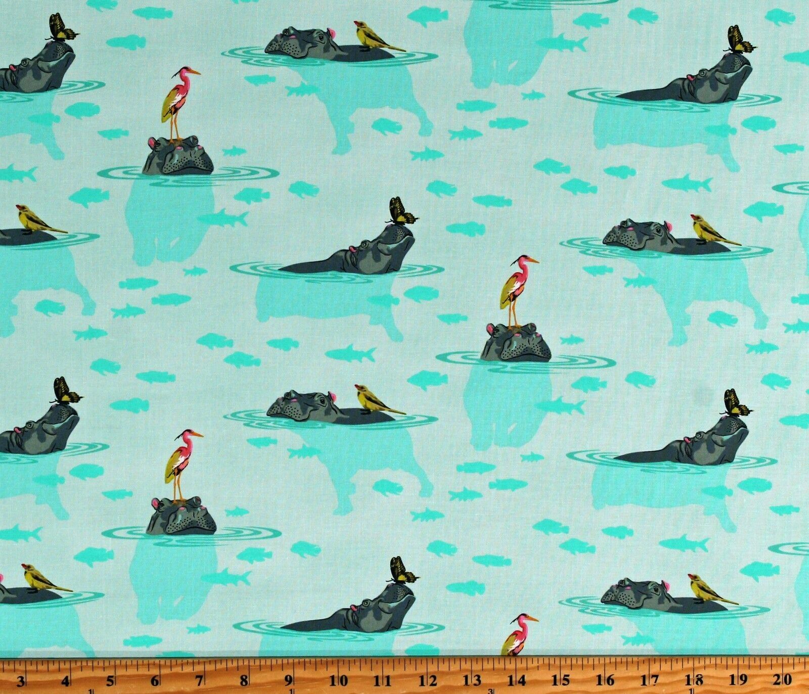 Cotton Tula Pink Everglow My Hippos Don't Lie Animals Spirit Mint Cotton Fabric Print by the Yard (PWTP204.SPIRIT)