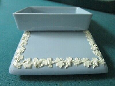 Wedgewood Blue Jasperware square trinket box, grapevine pattern original [91]