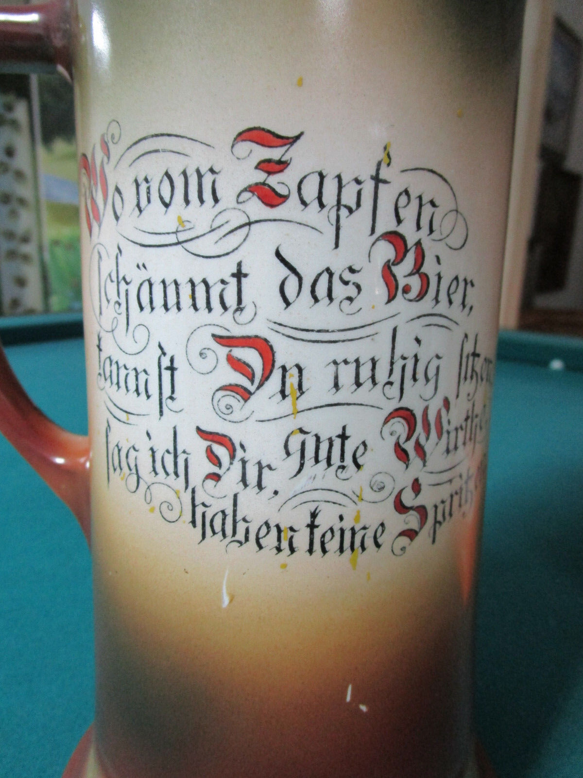 German TANKARD PITCHER JUG TROUVADOR LION HANDLE 11 1/2" * [*DINO]