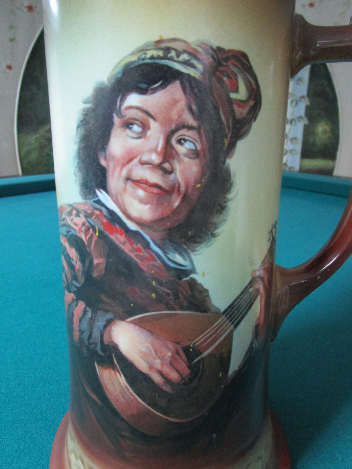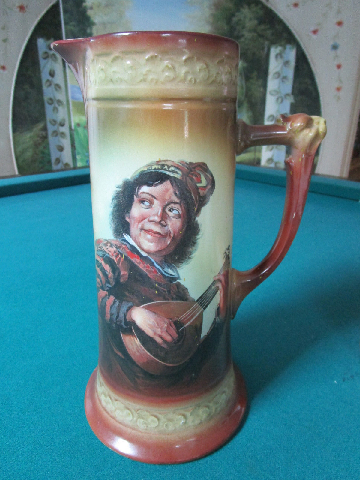 GERMAN TANKARD PITCHER JUG TROUVADOUR LION HANDLE 11 1/2" * Unmarked