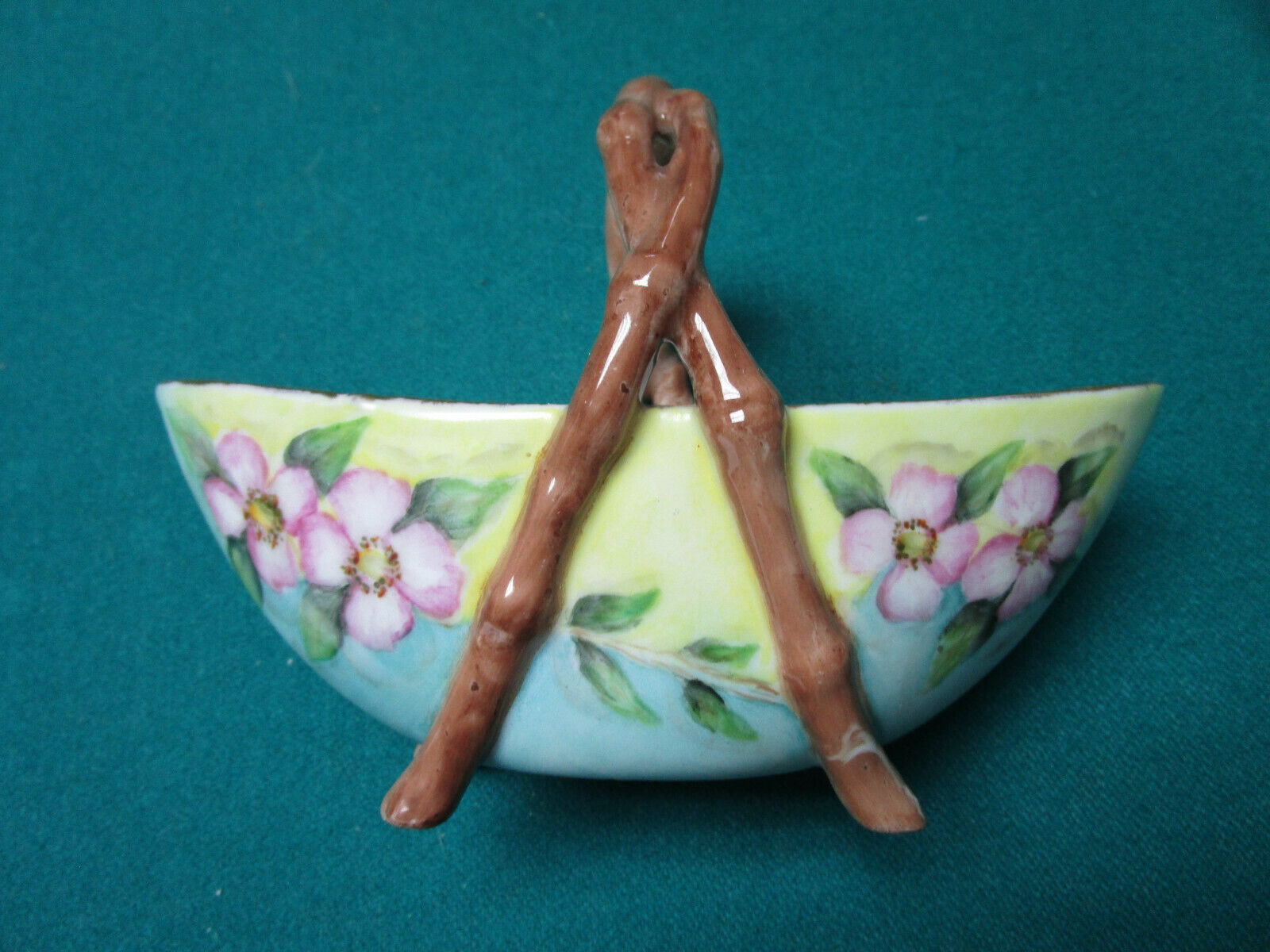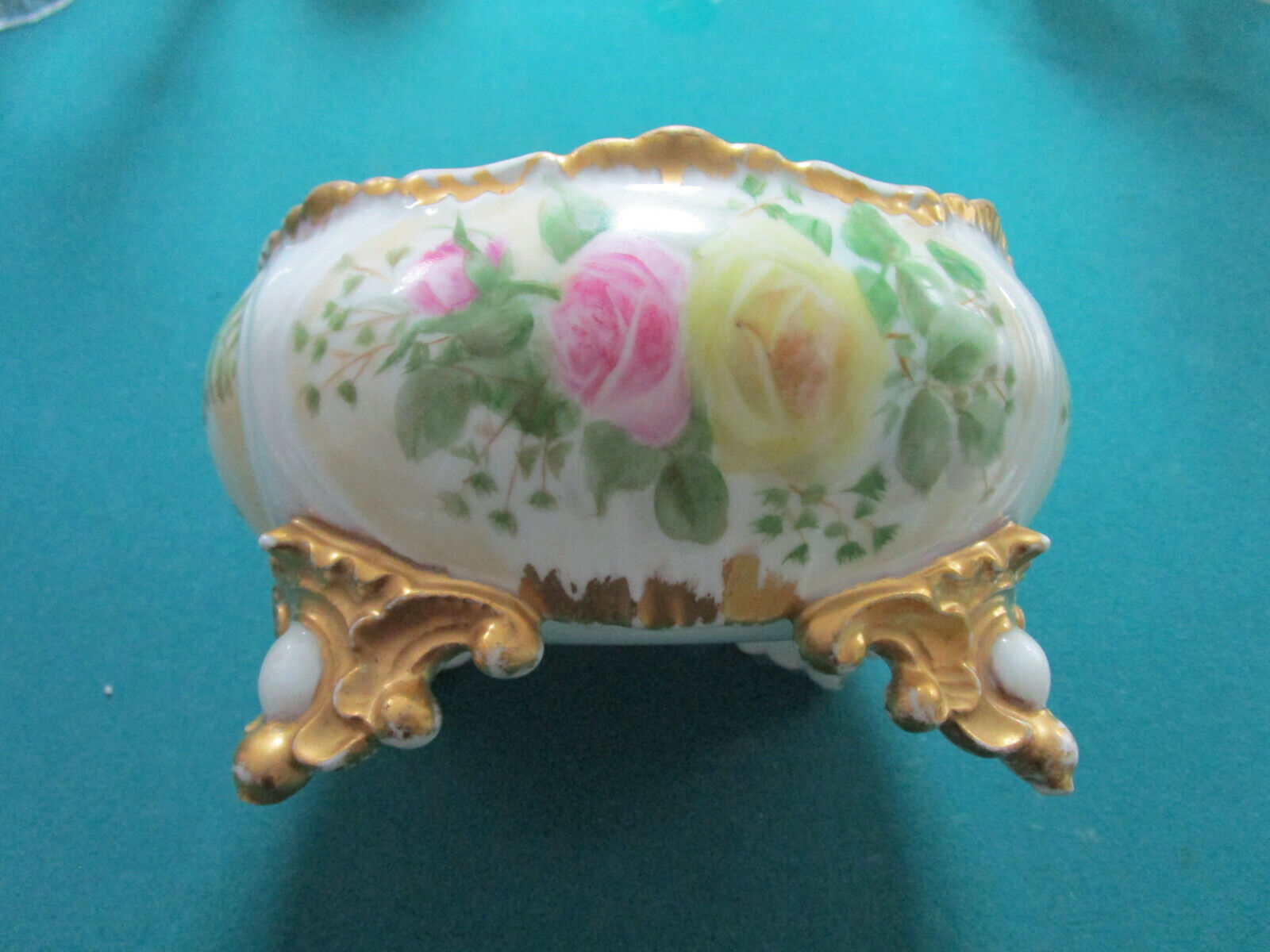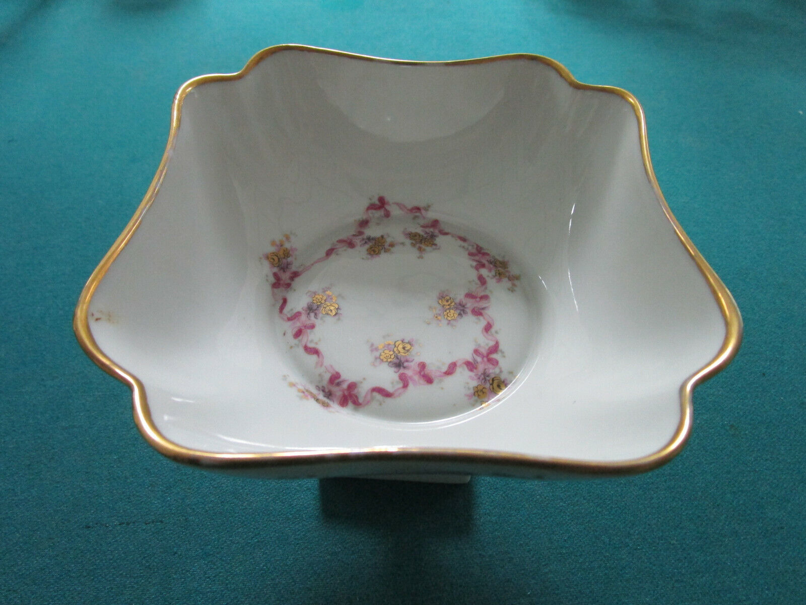 LIMOGES FRANCE ANTIQUE CHOCOLATIER, FOOTED BOWL, CANDY DISH SIGNED BASKET PICK 1