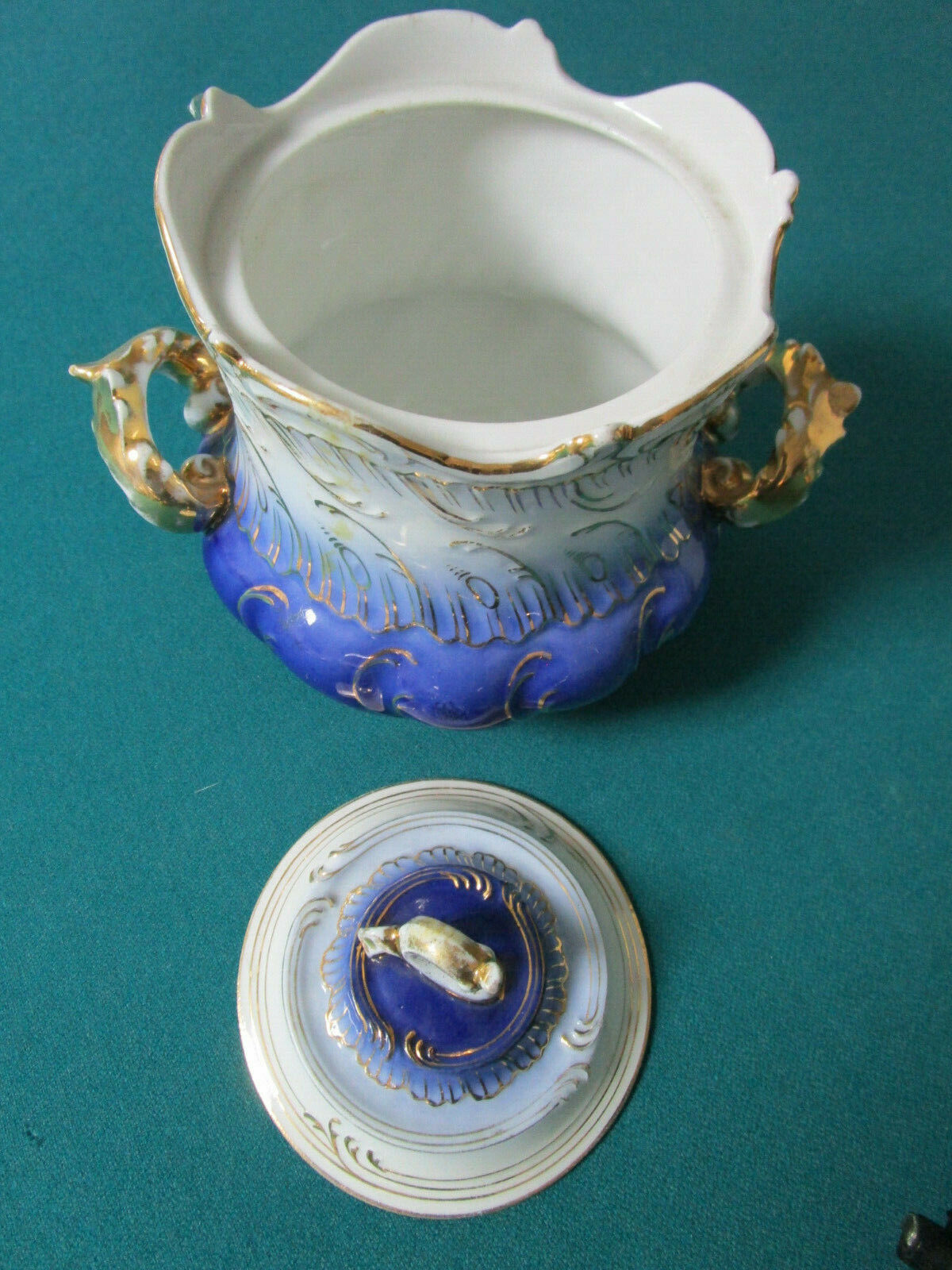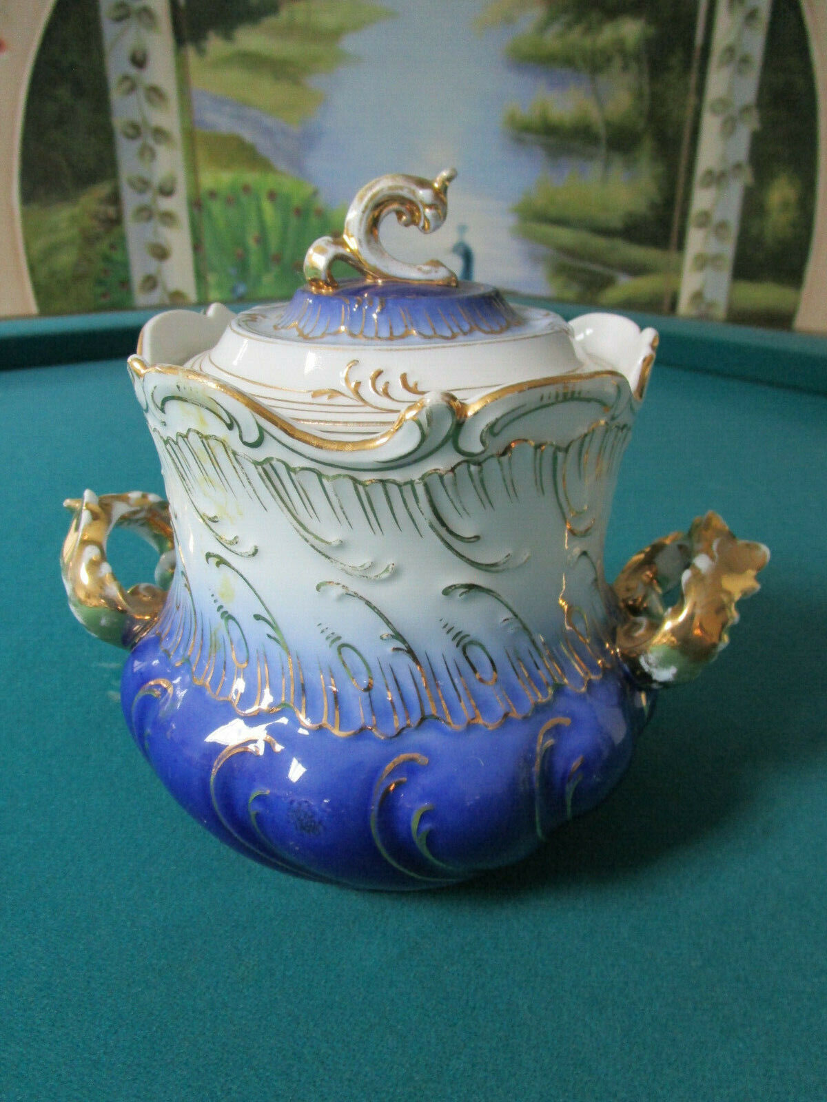 c1900s chamber? COOKIE JAR 6 1/2 X 5", blue and gold [rosenthalurnbskt]