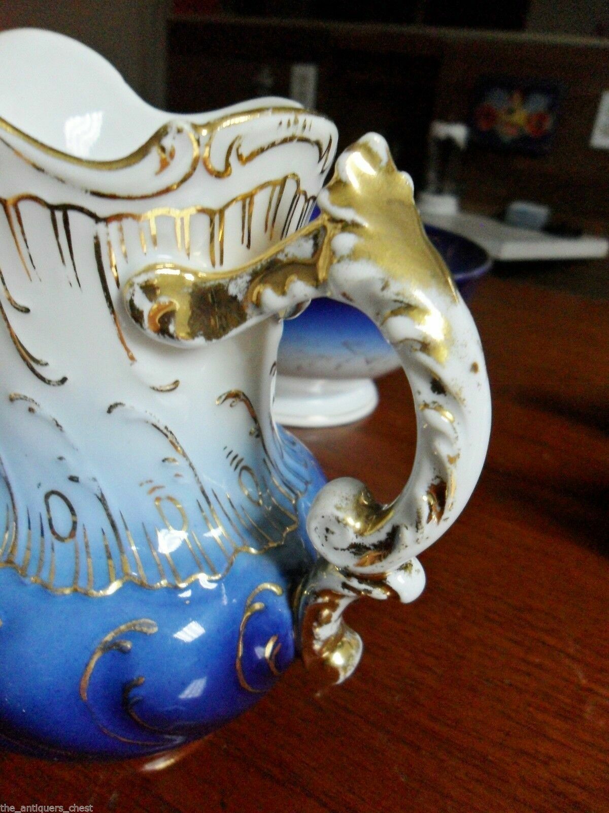 SONS,Carlsbad, Austria, c1900s chamber bowl and pitcher, blue and gold,