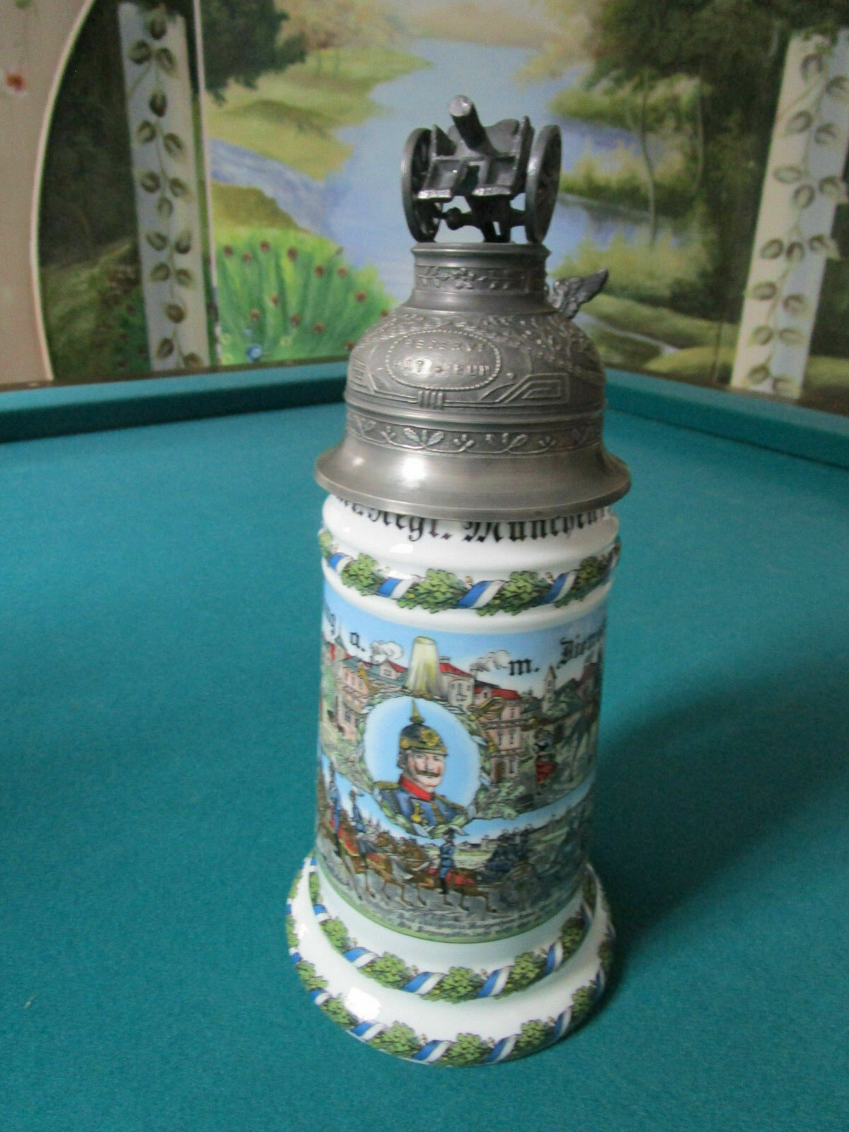 1- MERKLE ATELIER REGIMENTAL BEER STEIN GERMANY LITHOPHANE 11" MUNCHEN 1906 [*POTT7BSKT]