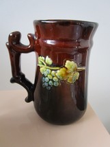 PETERS AND REED MUG PITCHER GRAPES BROWN GLAZE 6" [*a8]
