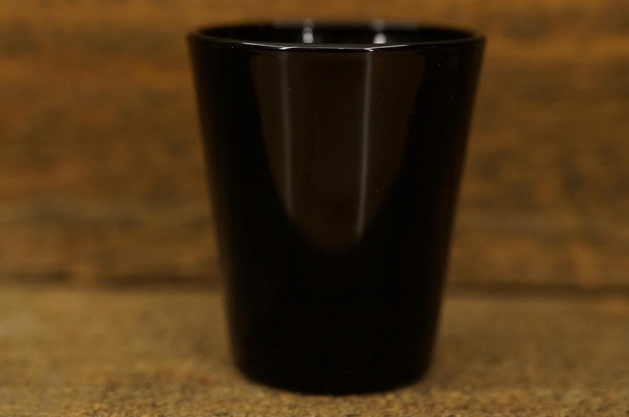 Vintage Advertising Barware Shot Glass Canadian Liquor YUKON JACK Black Opaque. Measures 2.25" tall.
