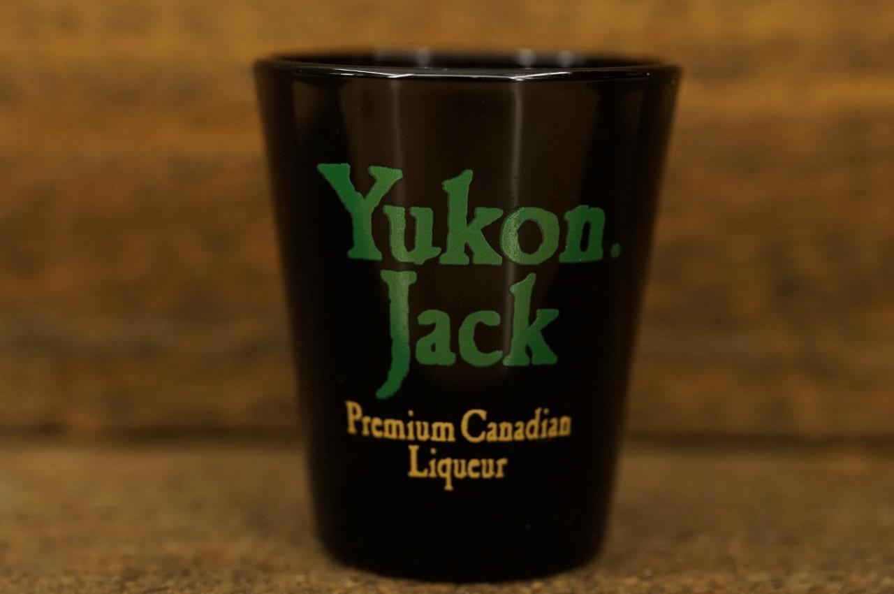 Vintage Advertising Barware Shot Glass Canadian Liquor YUKON JACK Black Opaque