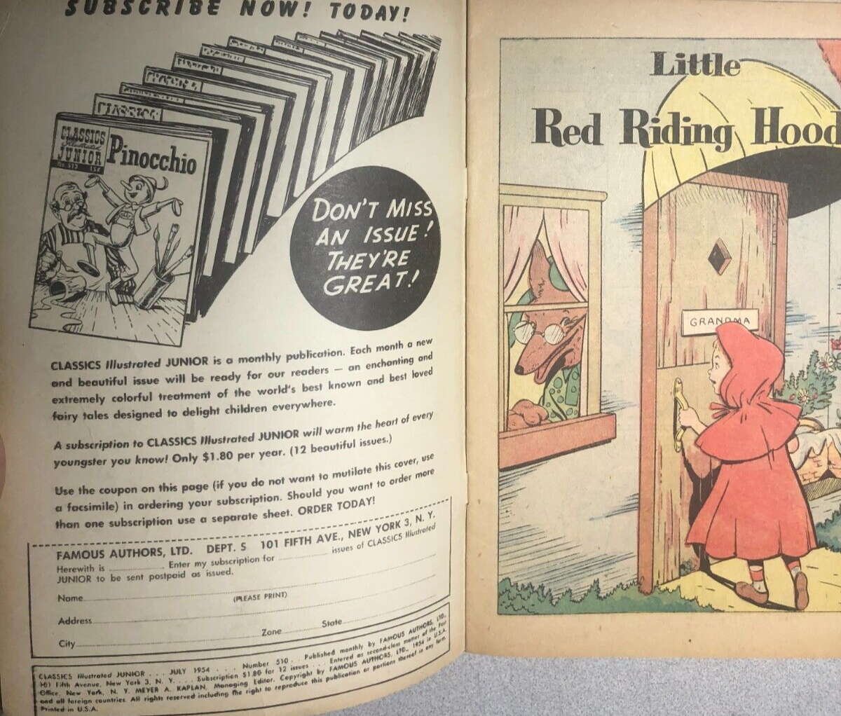 CLASSICS ILLUSTRATED JUNIOR #510 Little Red Riding Hood (HRN 576) VG