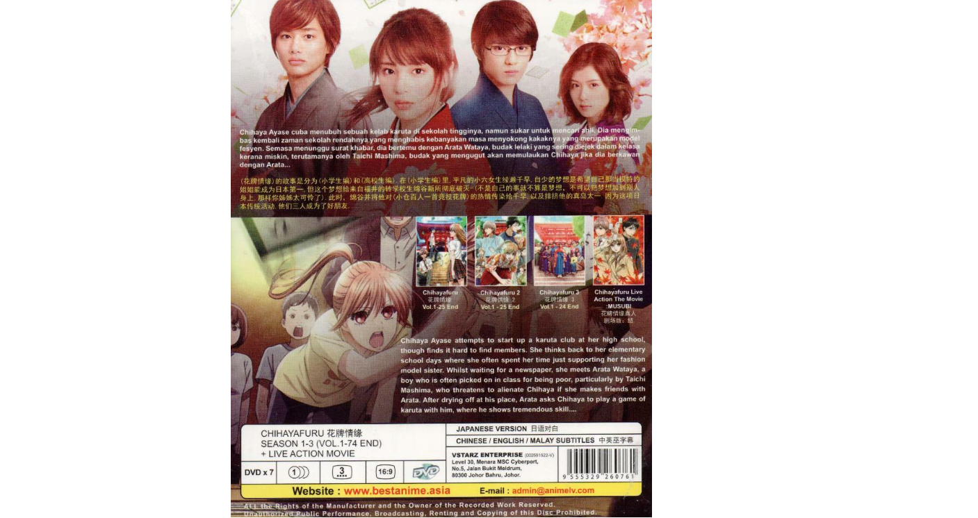 Anime DVD Chihayafuru Season 1-3 Vol.1-74 End + Live Action Movie English Sub