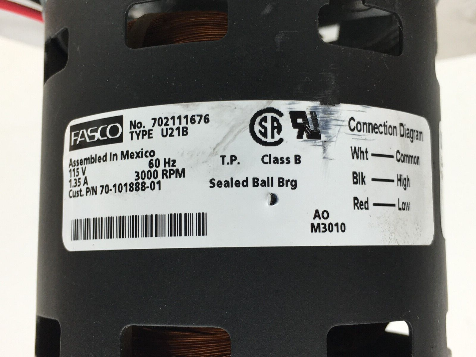This is FASCO 702111676 Draft Inducer Blower Motor Assembly 70-101888-01 115V 3000RPM used part.
