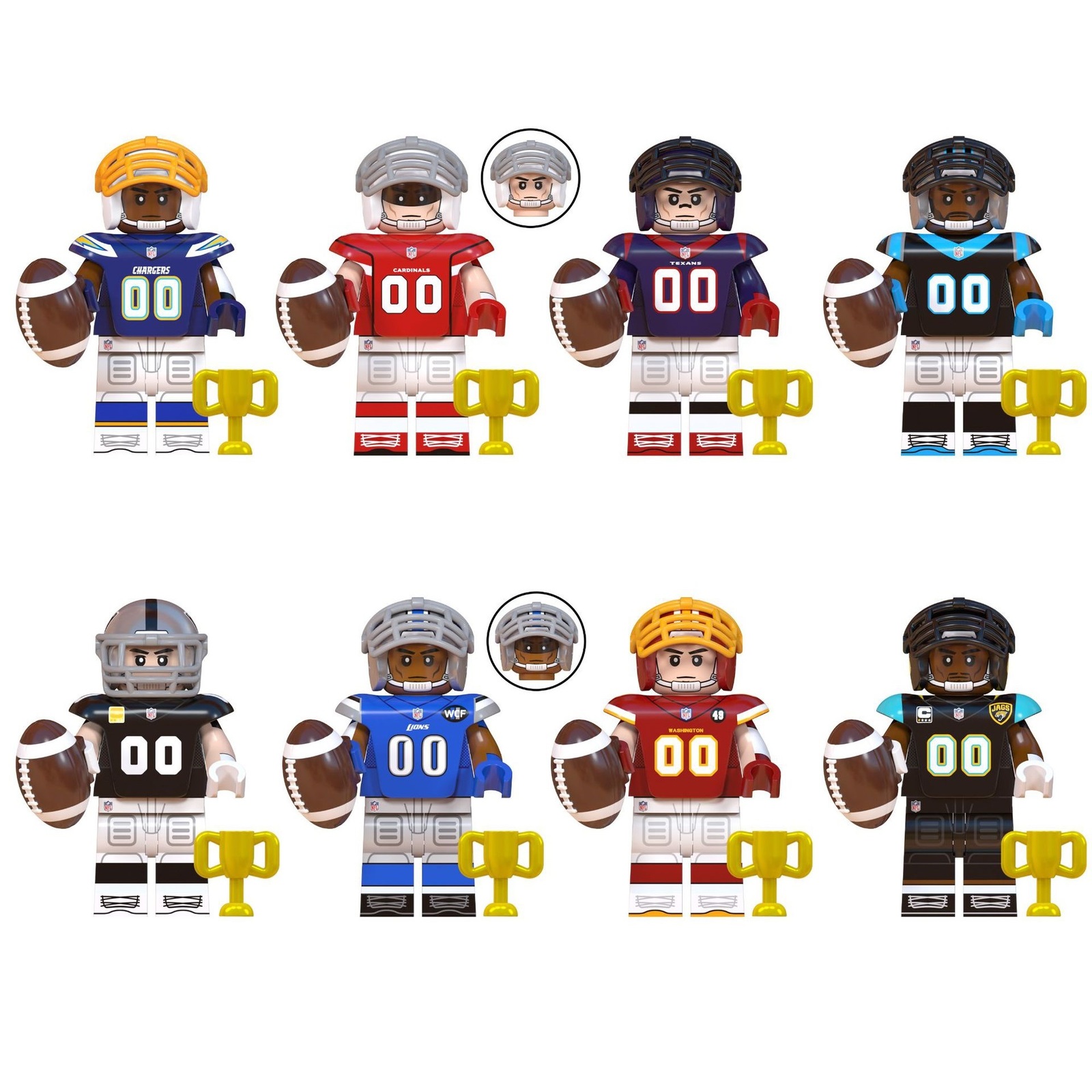 8pcs Football Players Super Bowl NFL Panthers Chargers Texans Lions Minifigures