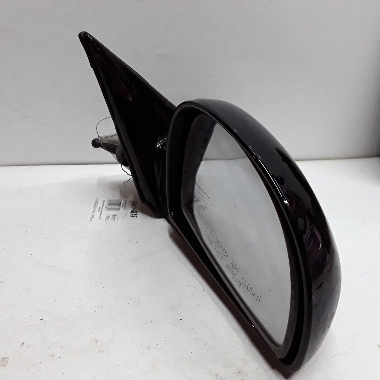 2002 to 2006 Hyundai Accent right passenger side painted black manual lever control door mirror.