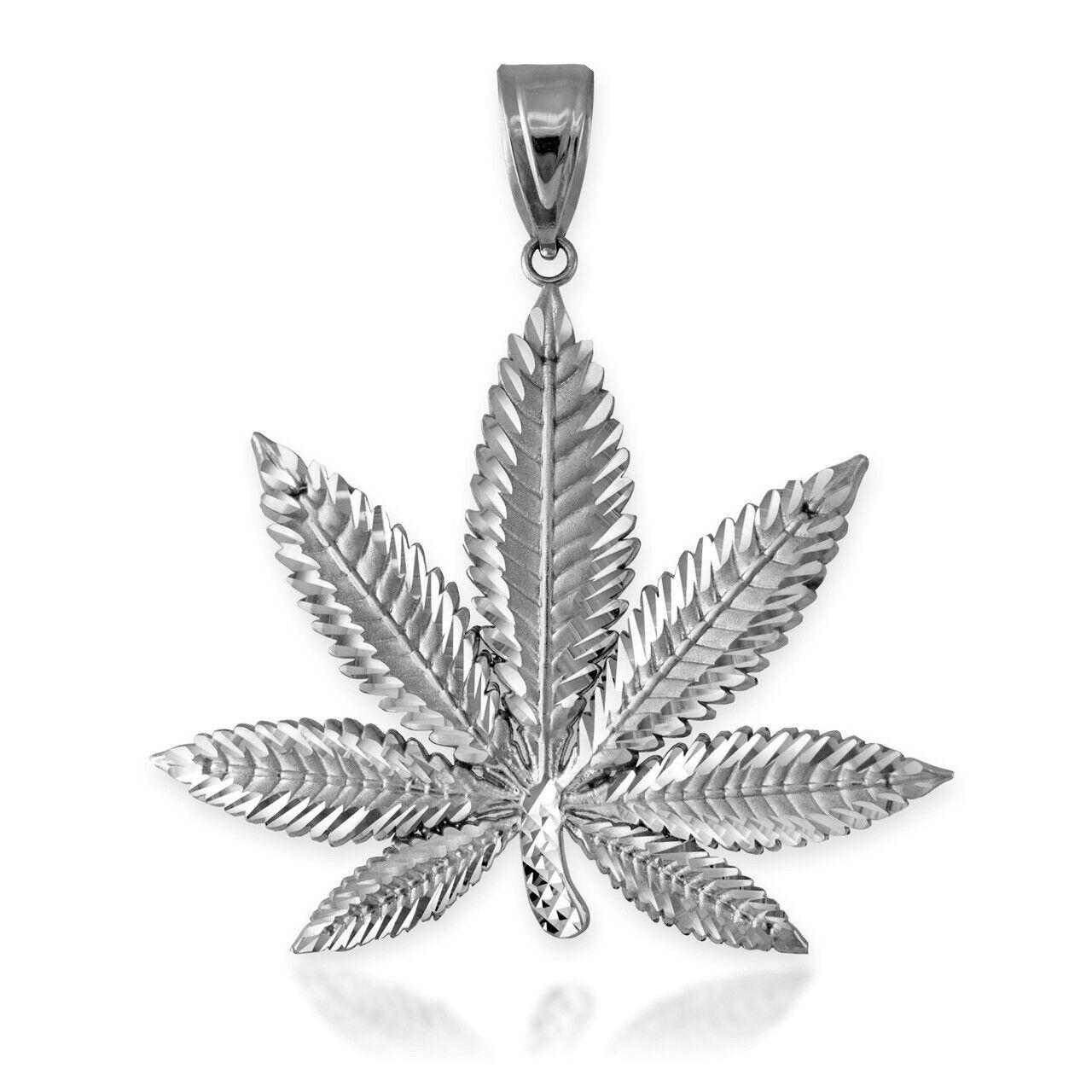 Sterling Silver Marijuana Cannabis Leaf Hip-hop Pendant with Diamond-Cut Design.