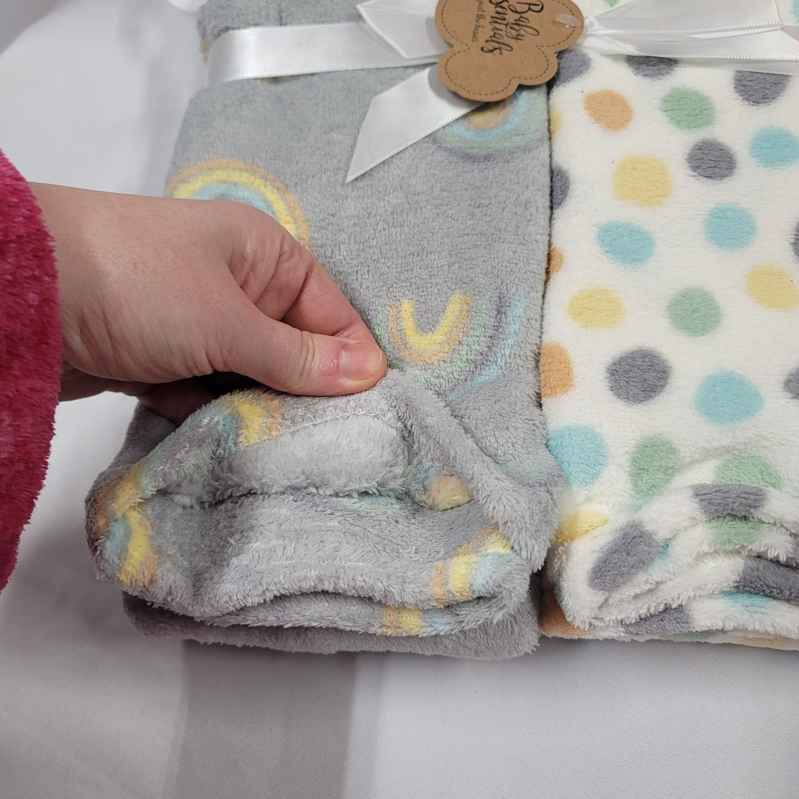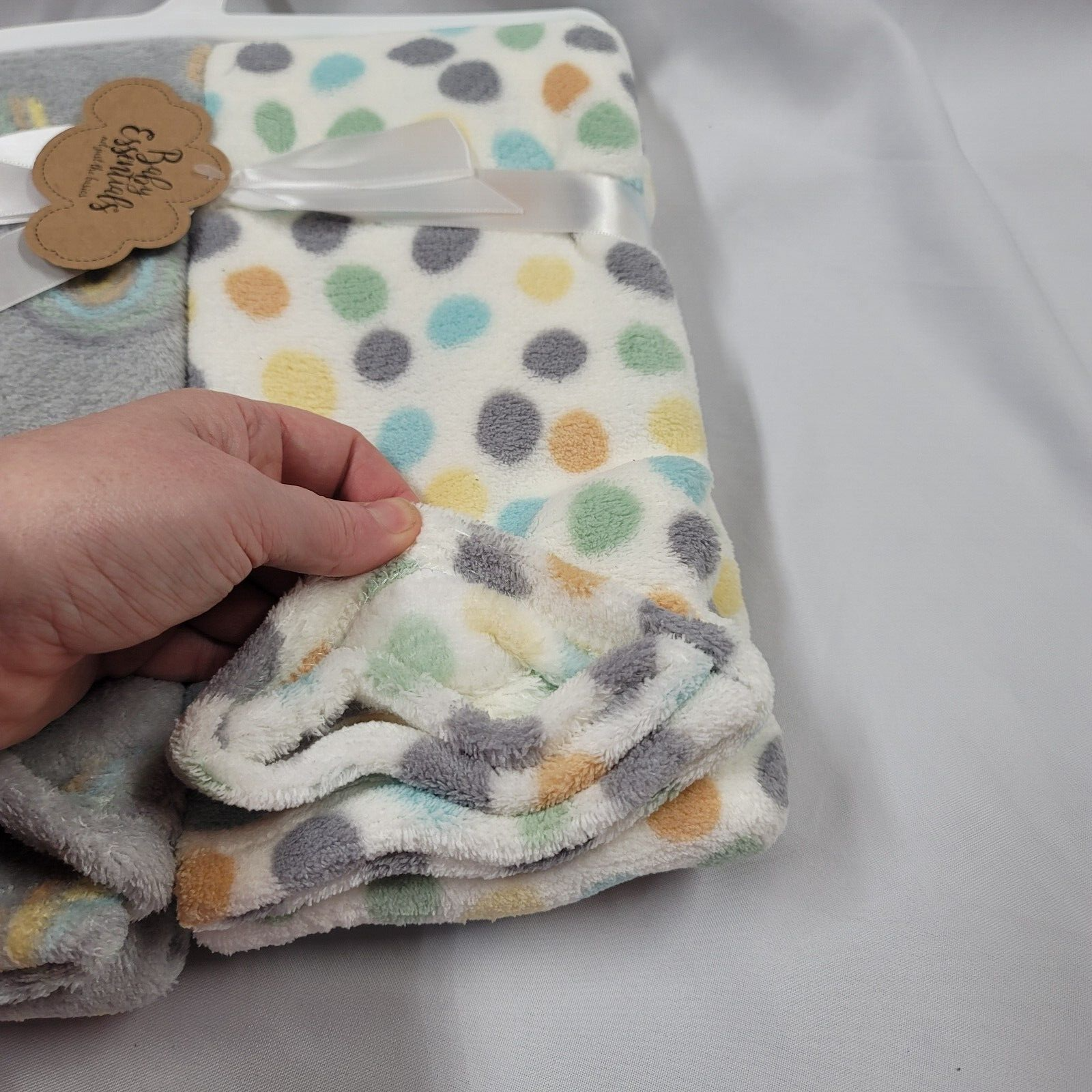 Baby Essentials 2 Pack Plush Fleece Blanket Gray Blue Yellow Orange Rainbow Dot