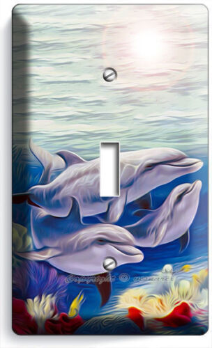 DOLPHIN FAMILY 1 GANG LIGHT SWITCH WALL PLATE MARINE LIFE AQUATIC ROOM ART DECOR