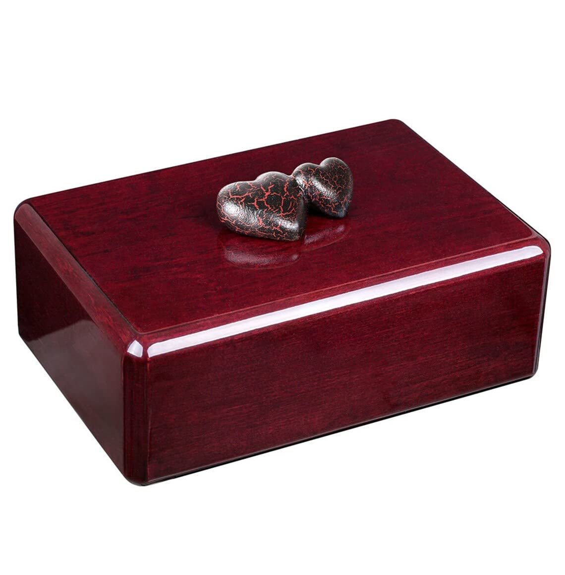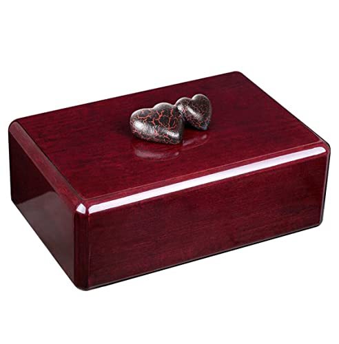 Mahogany Artistic Urn, Crackle Hearts, Unique Memorial Urn for Ashes |
