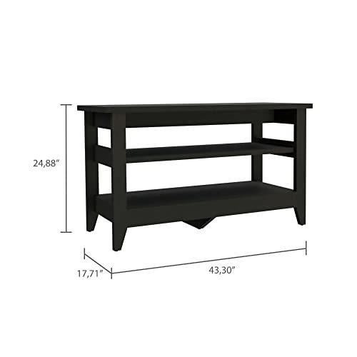 Add style and functionality to any room with the Vilna Storage Bench. With ample surface space and 2 open shelves, this bench provides plenty of storage for shoes, decorations, and more. The beautiful black or light oak manufactured wood finish adds a touch of elegance to any home decor. Measuring 43.30" W x 17.71" D x 24.88" H, this storage bench is the perfect size for any room. Whether you're looking to add extra storage space or simply want to enhance your home decor, the Vilna Storage Bench is the perfect choice.
