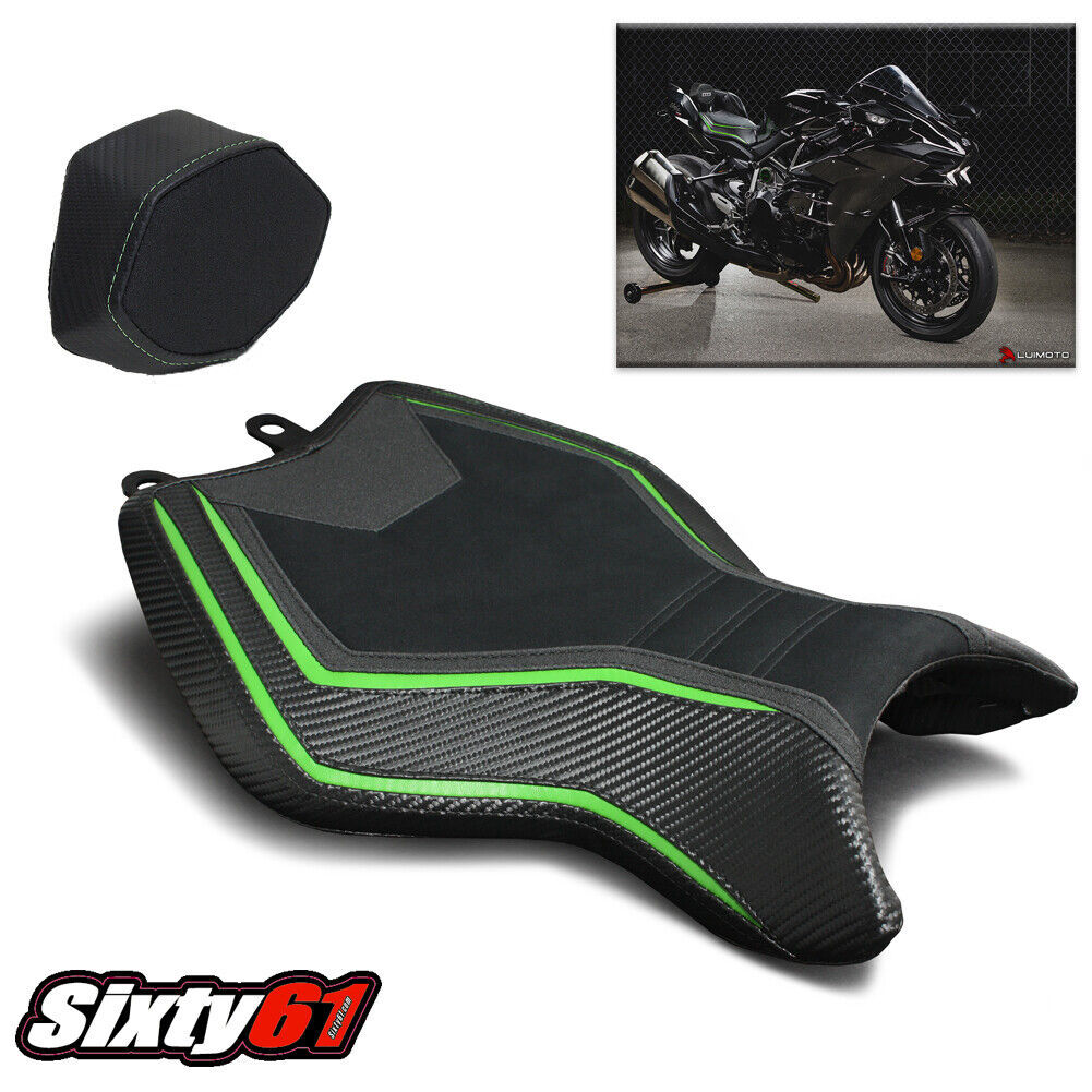 Kawasaki H2 Seat Covers 2015-2023 2024 2025 Luimoto Tec-Grip Cowl Green Suede