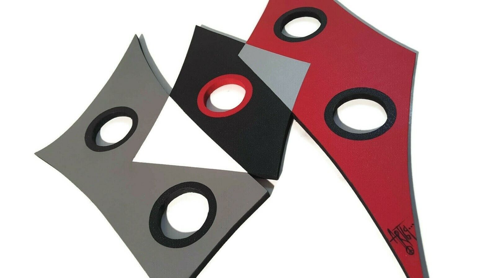 Red, black, gray, and white