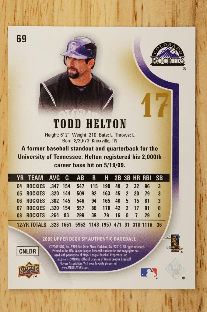2009 SP Authentic Todd Helton Colorado Rockies #69 Baseball Card 15/59