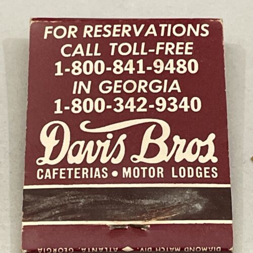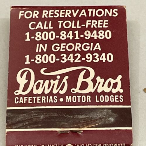 Vintage Matchbook Cover Davis Bros. Cafeterias • Motor Lodges • Georgia. gmg