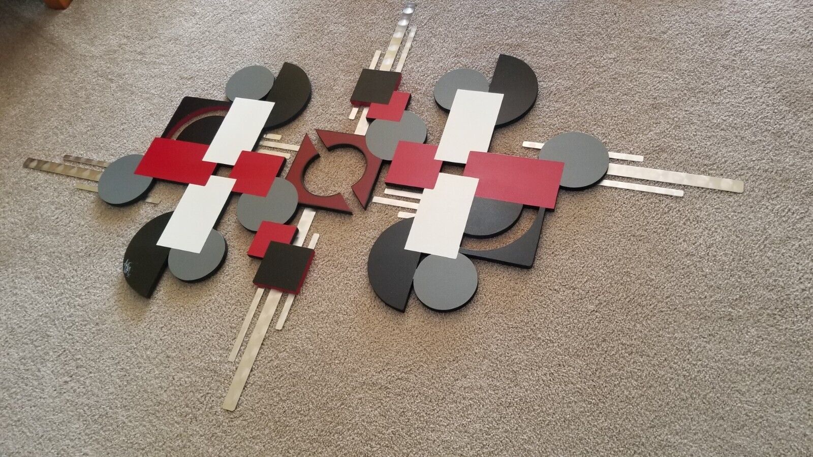 Abstract Geometric Squares 2 piece Wood Metal Wall hanging Wall sculpture,