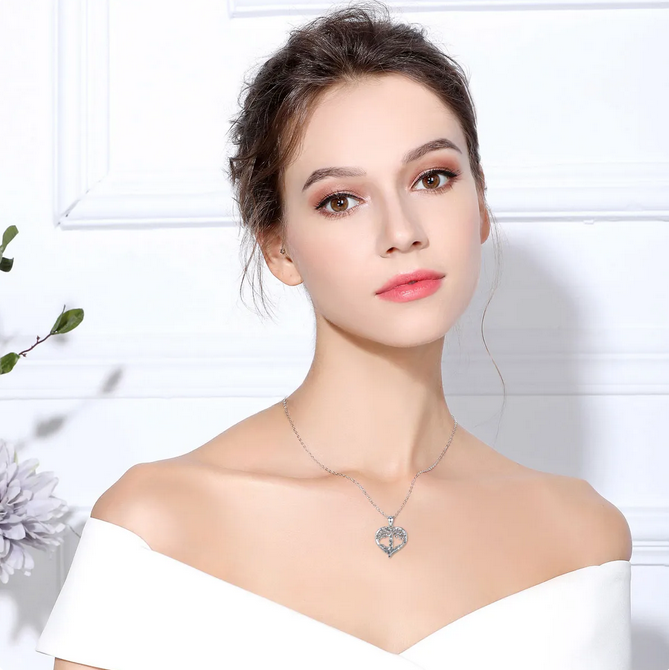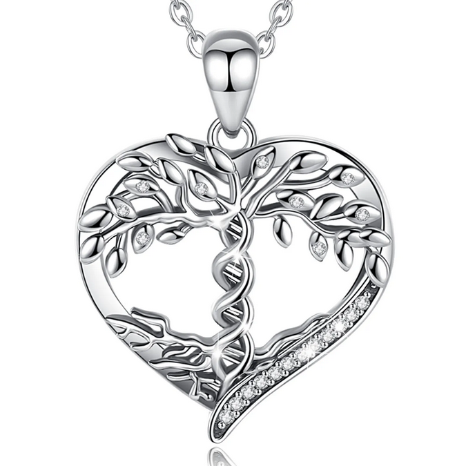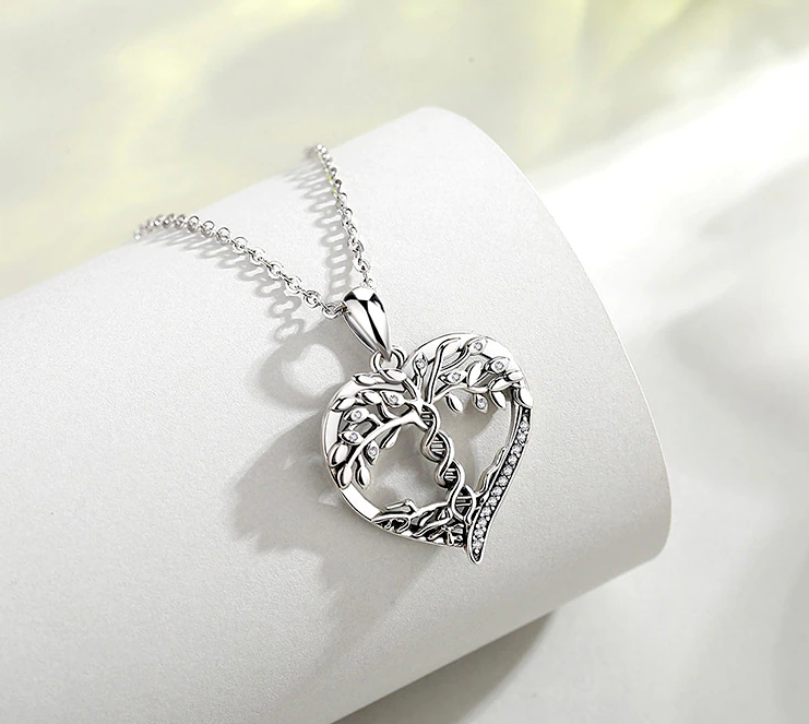 925 Sterling Silver Tree of Life Elegant Heart Zircon Pendant Necklace