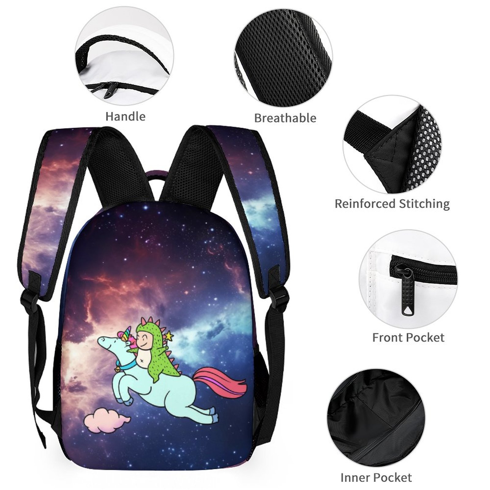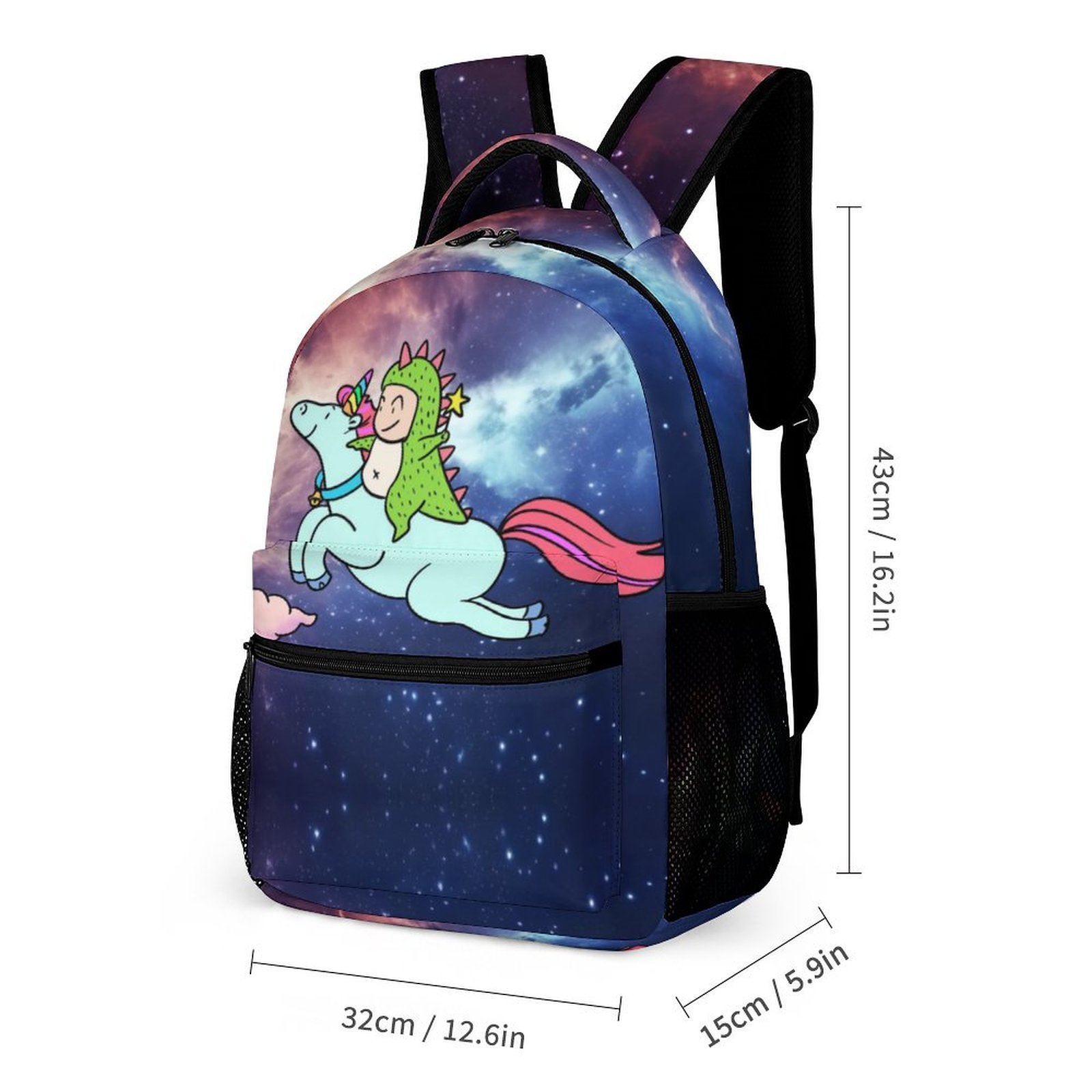 Colorful galaxy cartoon Dinosaur and unicorn bookbag for middle high school boys girls lightweight daypack Bag for teenager.
