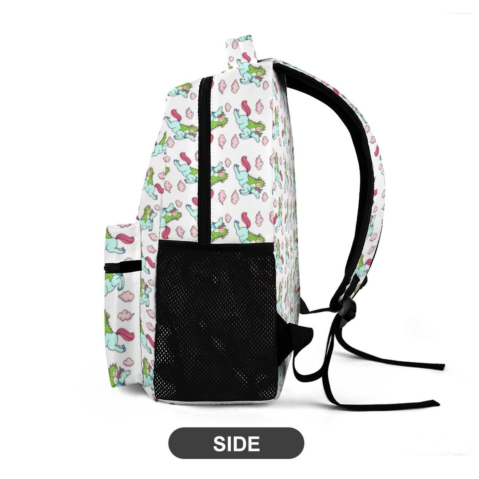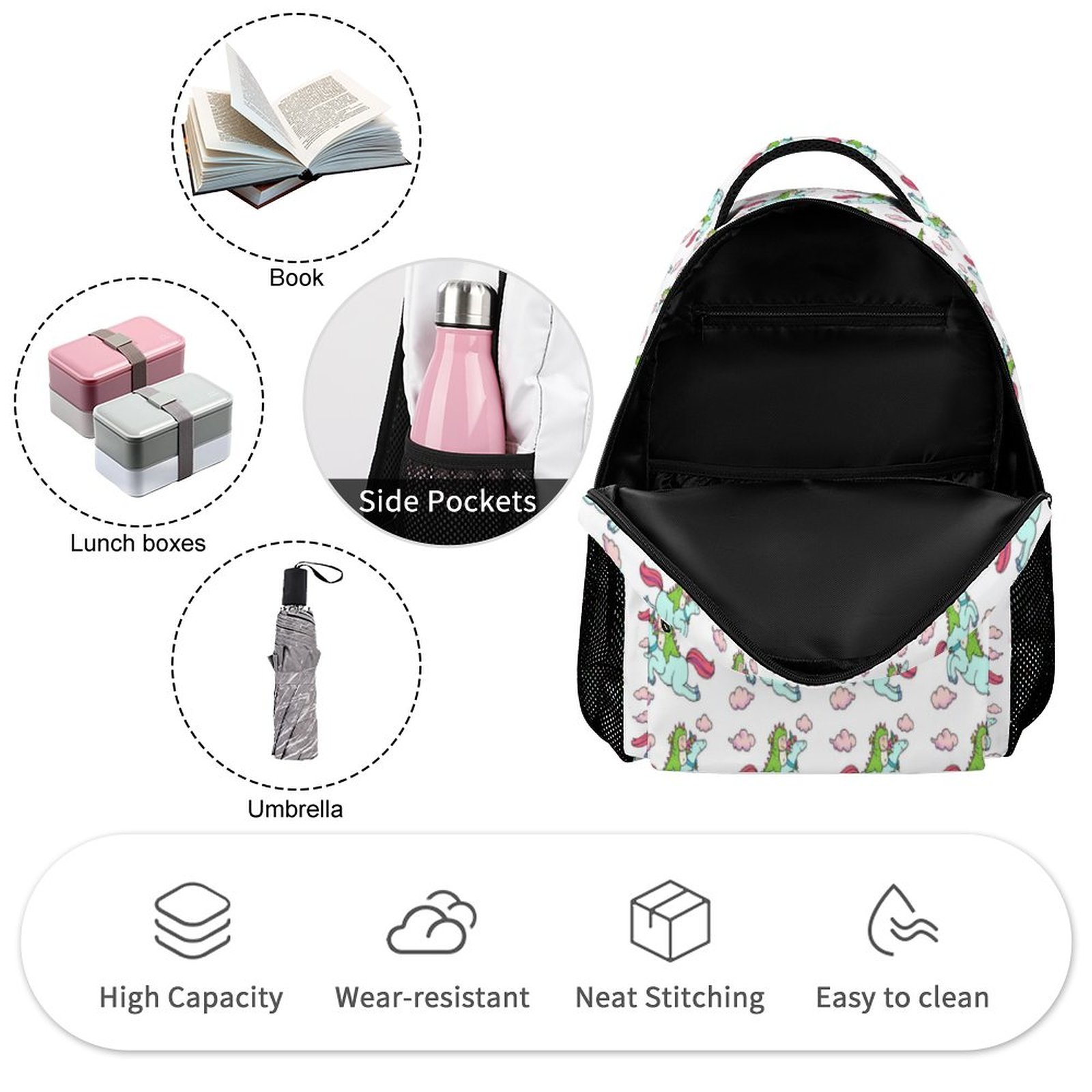 Colorful Dinosaur and unicorn white bookbag for middle high school boys girls lightweight daypack Bag for teenager.