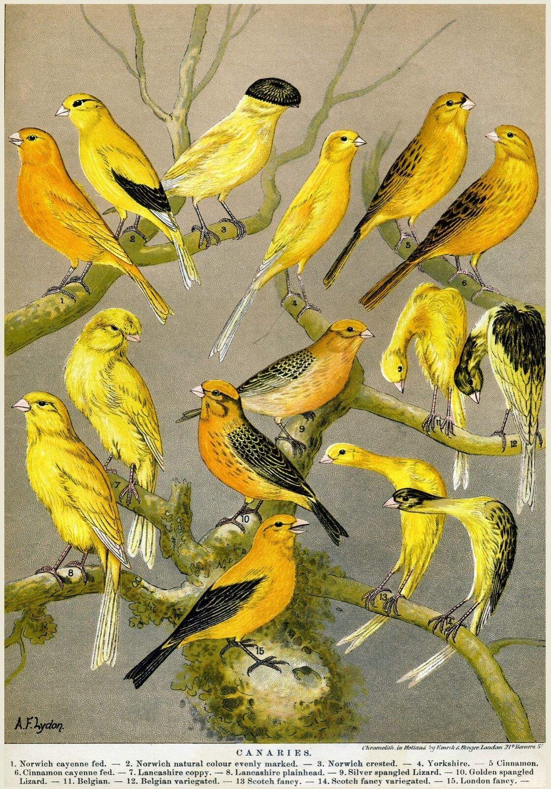3419.Canary all types for hobby POSTER.Home Room Science School Art decoration