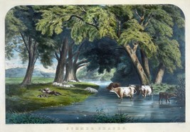 4610.man resting on side of river.cows cross river.POSTER.decor Home Office art