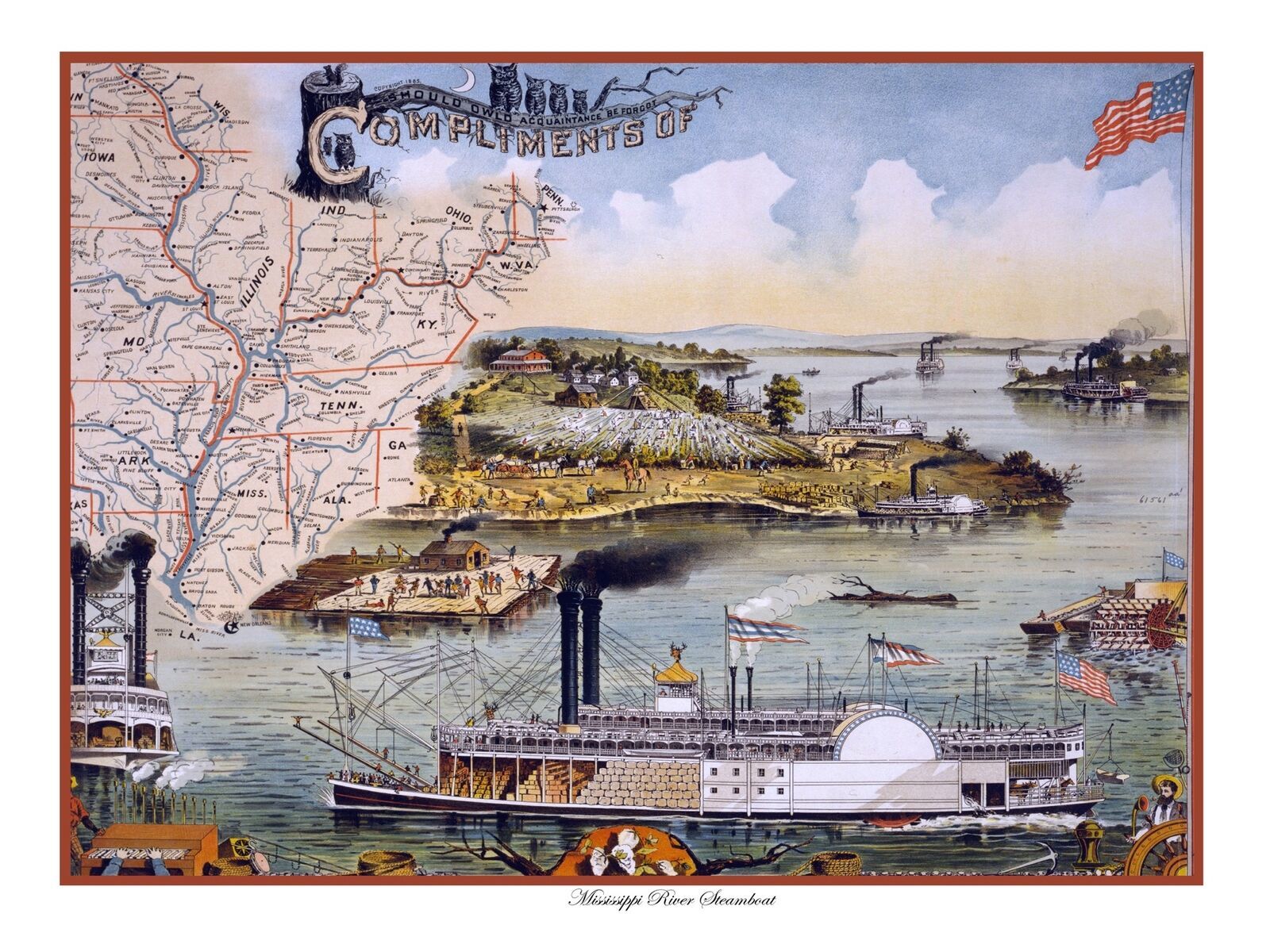 4421.Compliments of the Mississippi River Steamboat.POSTER.decor Home Office art
