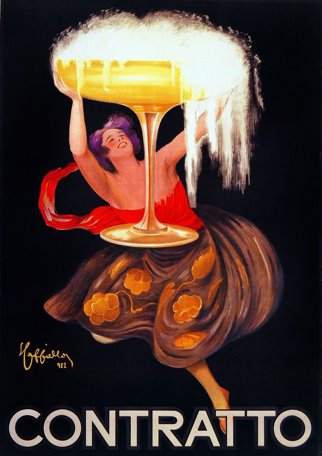4254.Contratto.woman with goblet and champagne.POSTER.decor Home Office art