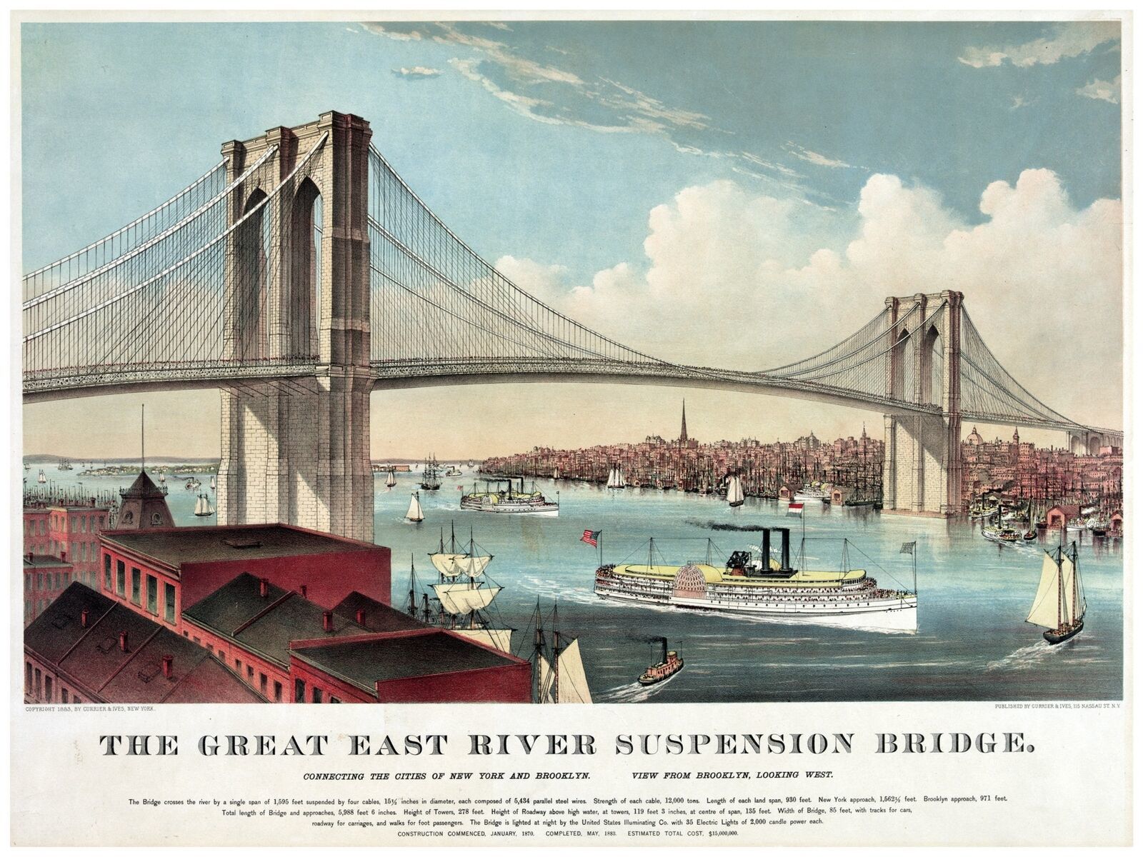 4449.The great east river suspension bridge.POSTER.Train decor Home Office art