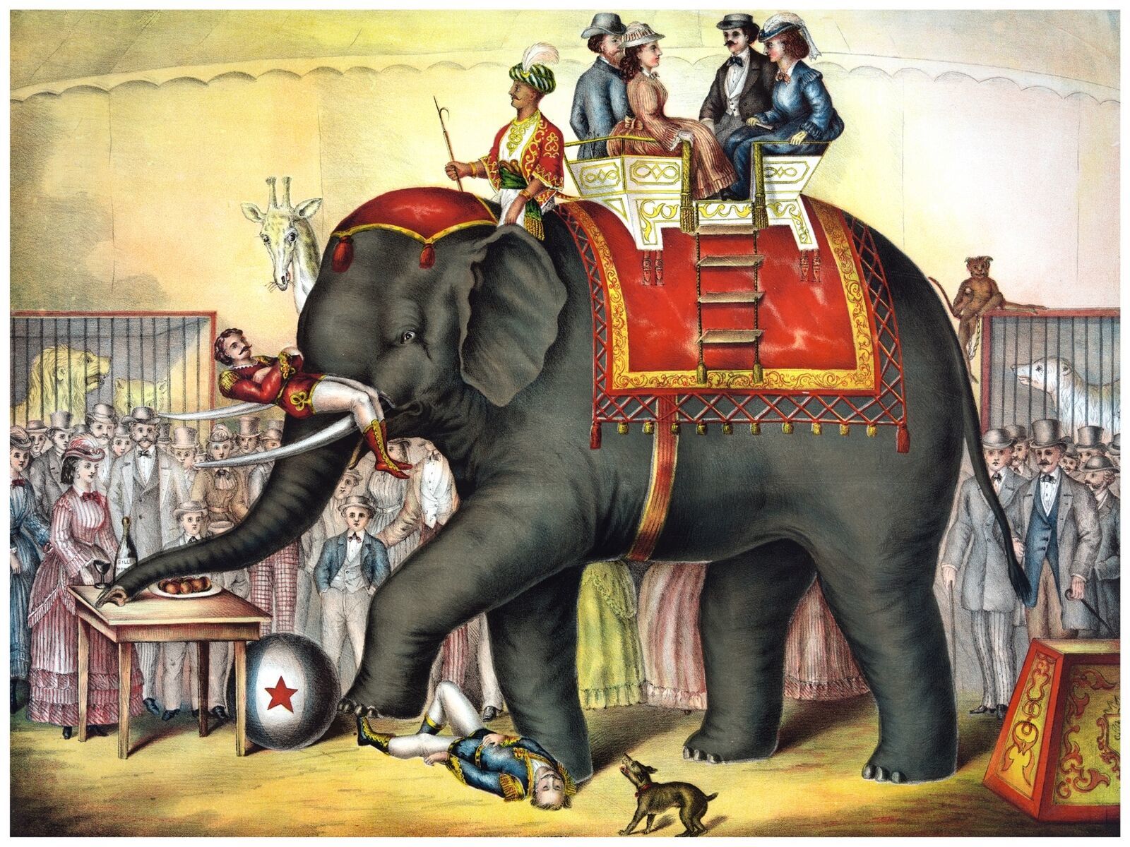 4492.Elephant in circus walking over man.POSTER.decor Home Office art