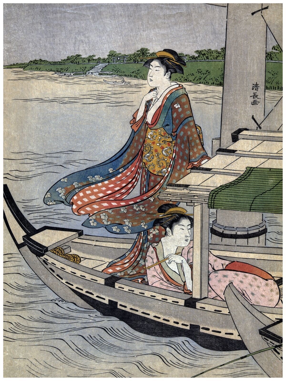 4805.Japanese women sitting by river.waiting.POSTER.decor Home Office art