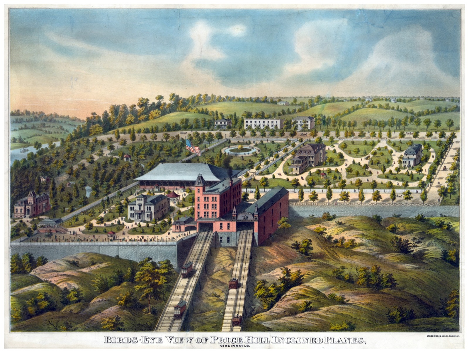9079.Bird's eye view of price hill.inclined planes.POSTER.decor Home Office art
